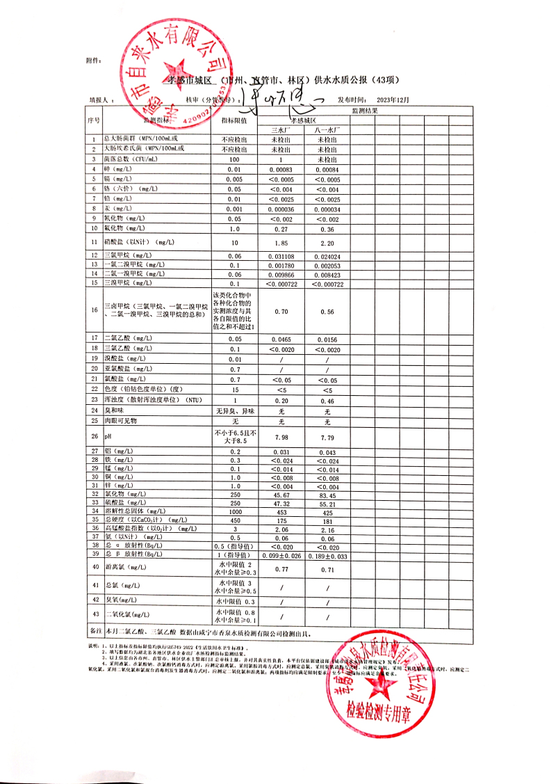 2023年12月水質報告