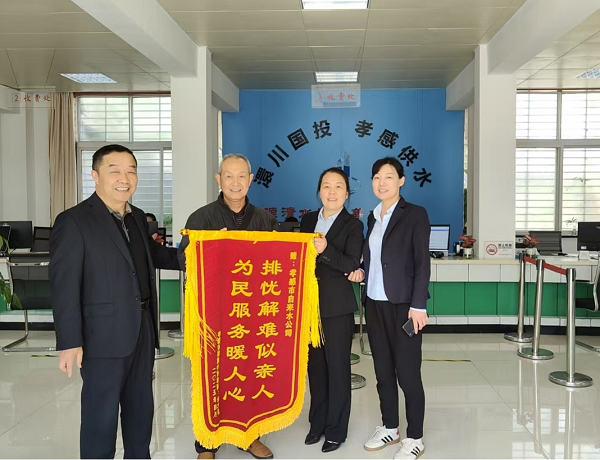 4月14日上午,槐蔭小區(qū)的余先生將一面繡有“排憂解難似親人 為民服務(wù)暖人心”的錦旗贈(zèng)予自來(lái)水公司,并對(duì)自來(lái)水公司員工的辛勤工作表示了衷心的感謝。