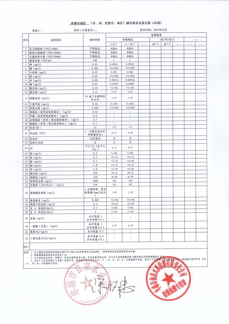 2019年5月水質(zhì)報告